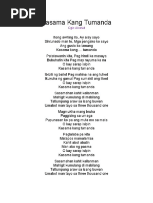Pag nirayuma ka na. Itong awiting ito Ay alay sayo Sintunado man tong Mga pangako sayo Ang gusto ko lamang Makasama kang tumanda Patatawanin kita Pag hindi ka masaya Bubuhatin kita Pag nirayuma ka na O kay sarap isipin Kasama kang tumanda Ibibili ng balot Pag mahina na tuhod Ikukuha ng gamot Pag sumakit ang likod O kay sarap isipin Kasama kang tumanda Sasamahan kahit. Verse 1 A Itong awiting ito Bm Ay alay sayo Cm Sintunado man tong D Mga pangako sayo A Ang gusto ko lamang E D A Kasama kang tumanda Verse 2 A.