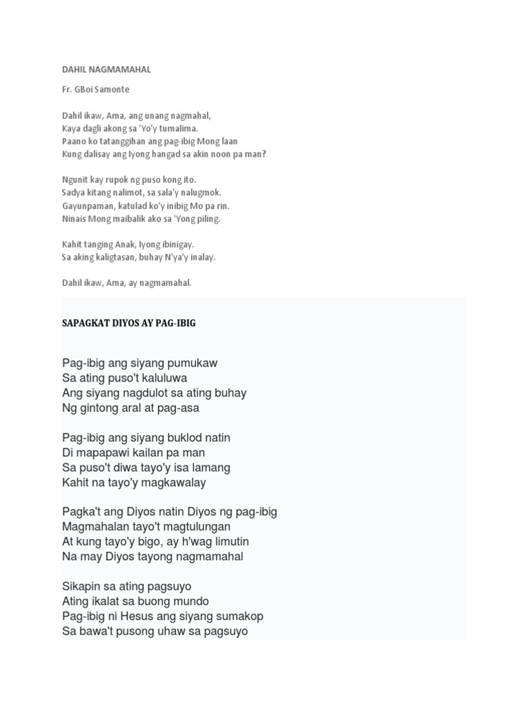 Dahil Nagmamahal At Sapagkat Diyos Ay Pag Ibig Pdf